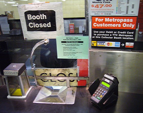 The idea of incarcerating a worker into a glass cell to dispense a few cash fares over a lengthy work shift became outdated in the 1980s. Some of us strive to retain many of the TTC’s mid-century features, but this shouldn’t be one of them. The staff report admits that “many transit properties” have entirely automated entrances. The report, then, admits that other transit properties managed to keep up with the late 20th century. (TTC’s newest fully-automated entrances, as on the Sheppard line, still require a human collector to buzz you in or out if you’re using a wheelchair.)