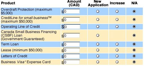 No amount of accessible HTML markup can salvage this example. It’s confusing for a nondisabled person and essentially unusable in serial access under a screen reader. In a case such as this, it would be preferable to ask a series of questions (product type first? new or increase? amount?) either on consecutive screens, à la a shopping cart. Or use a form that auto-expands based on the context of the visitor’s responses. For a non-corporate example of the latter (PlanetOut personal ads!), see p. 294 of my book. |